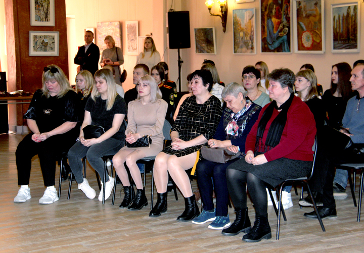 На экране появляются их фото, а глава города и военком передают награды героев матерям и жёнам.