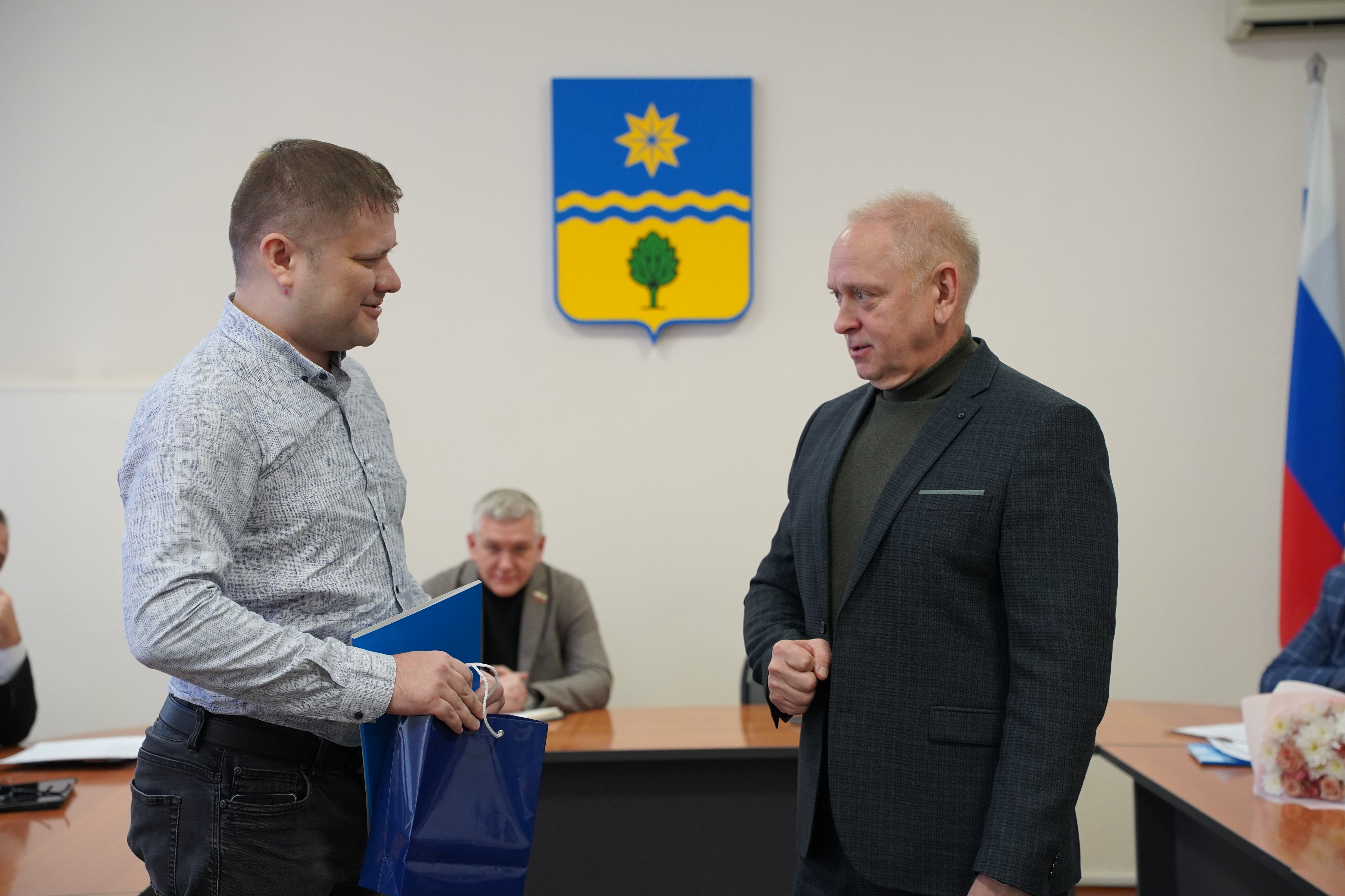 Игорь Воронин вручил Юрию Грохульскому благодарность и подарок от администрации города.
