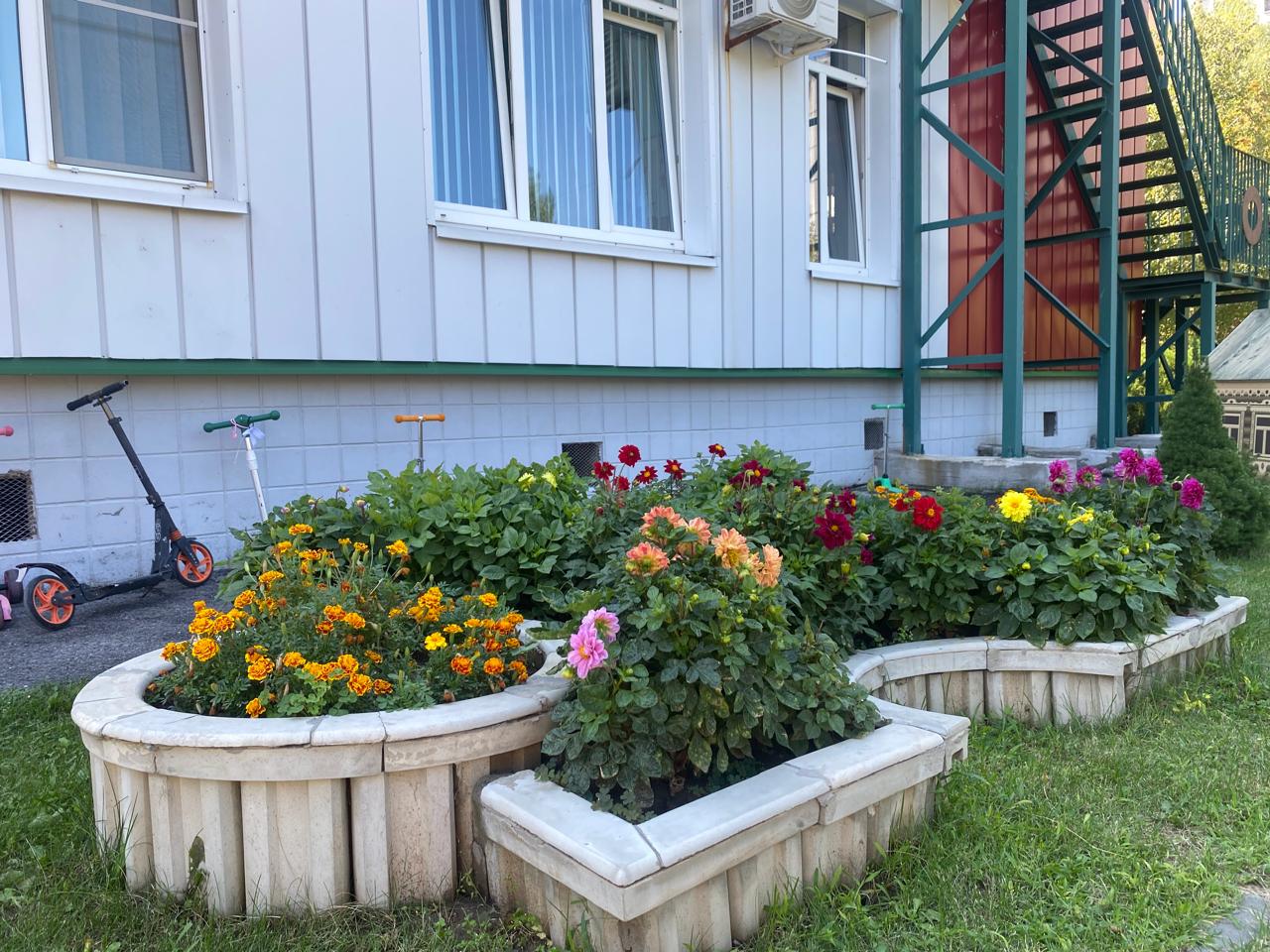 Интересную клумбу представил на конкурс детский сад № 112: сотрудники оформили цветами вход в дошкольное учреждение. В школе № 3 для оформления клумбы вместе с цветами были использованы предметы интерьера.