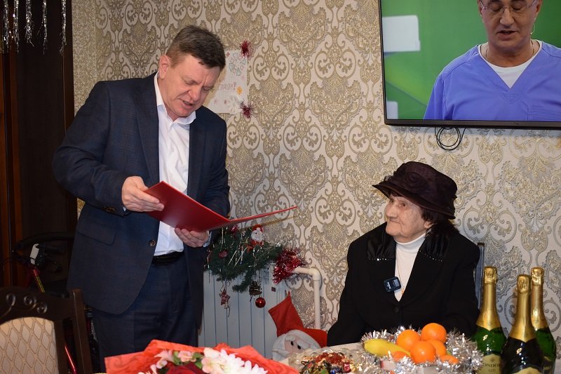 Юрий Анатольевич от имени Главы города поздравил Марию Ивановну с замечательной датой и пожелал здоровья, долгих лет жизни, счастья и благополучия.
