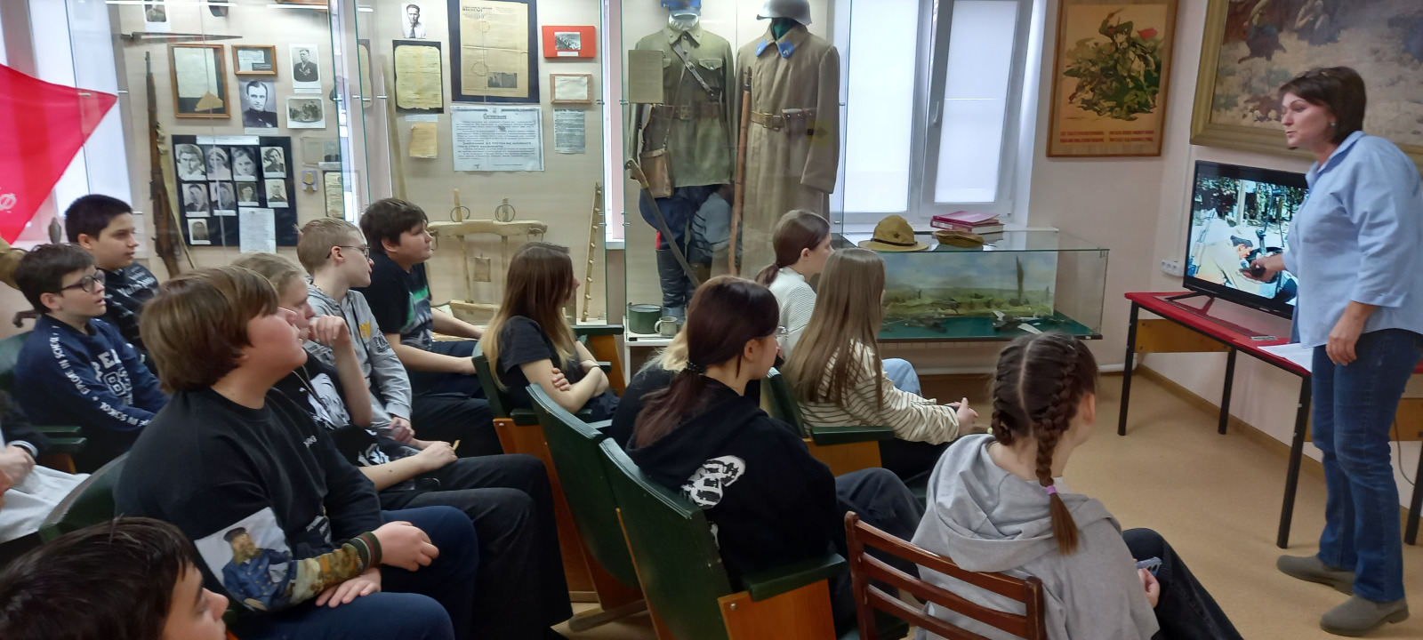 В ходе музейного урока ребята осмотрели экспозицию, в которой размещены экспонаты участников военных событий.
