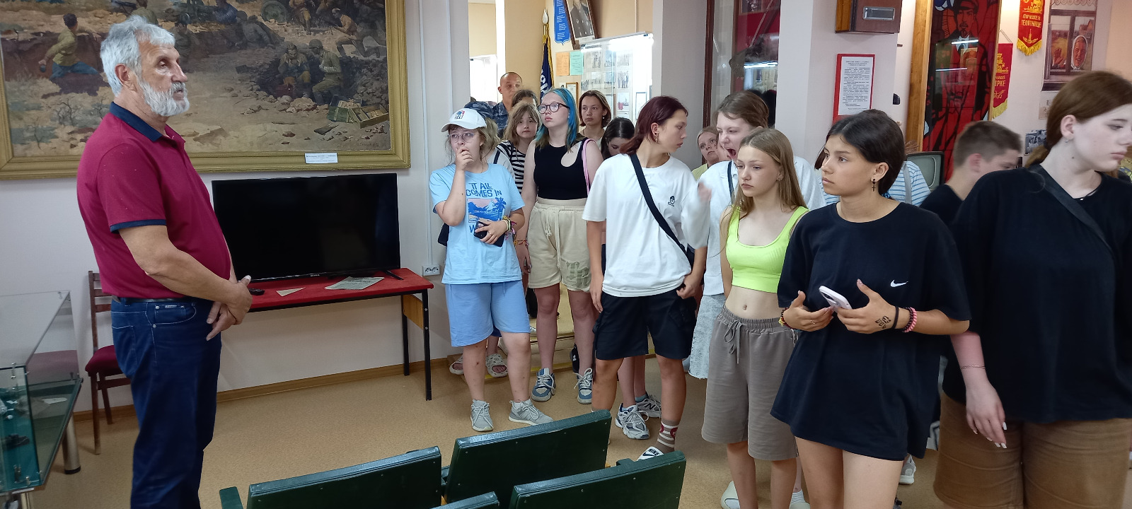 Дети сотрудников правоохранительных органов Запорожской области и Луганской народной республики осмотрели экспозицию «Назад в СССР» Чернышковского казачьего музея, на днях побывав проездом в нашем районном центре.