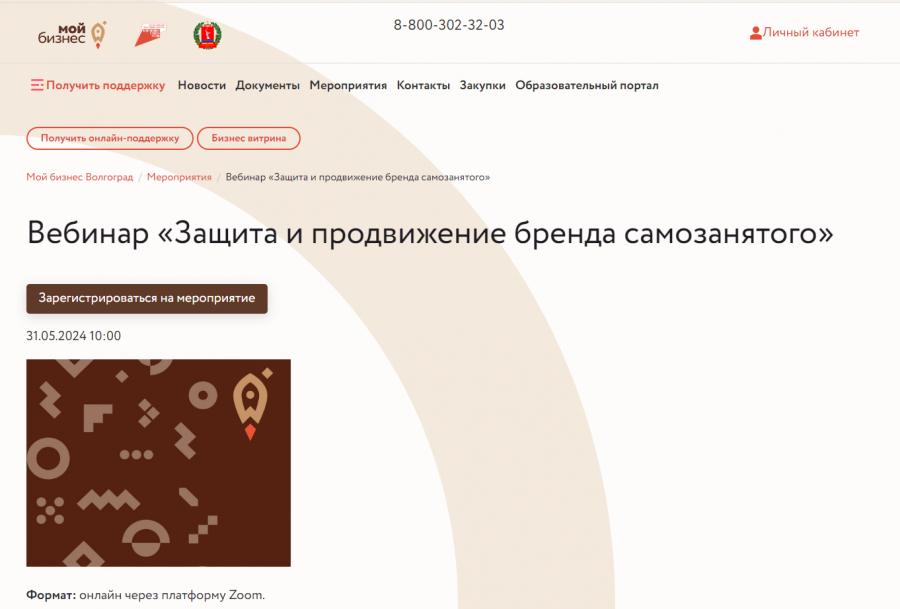 Тема вебинара «Защита и продвижение бренда самозанятого». Организатор: Центр поддержки предпринимательства ГАУ ВО «Мой бизнес»