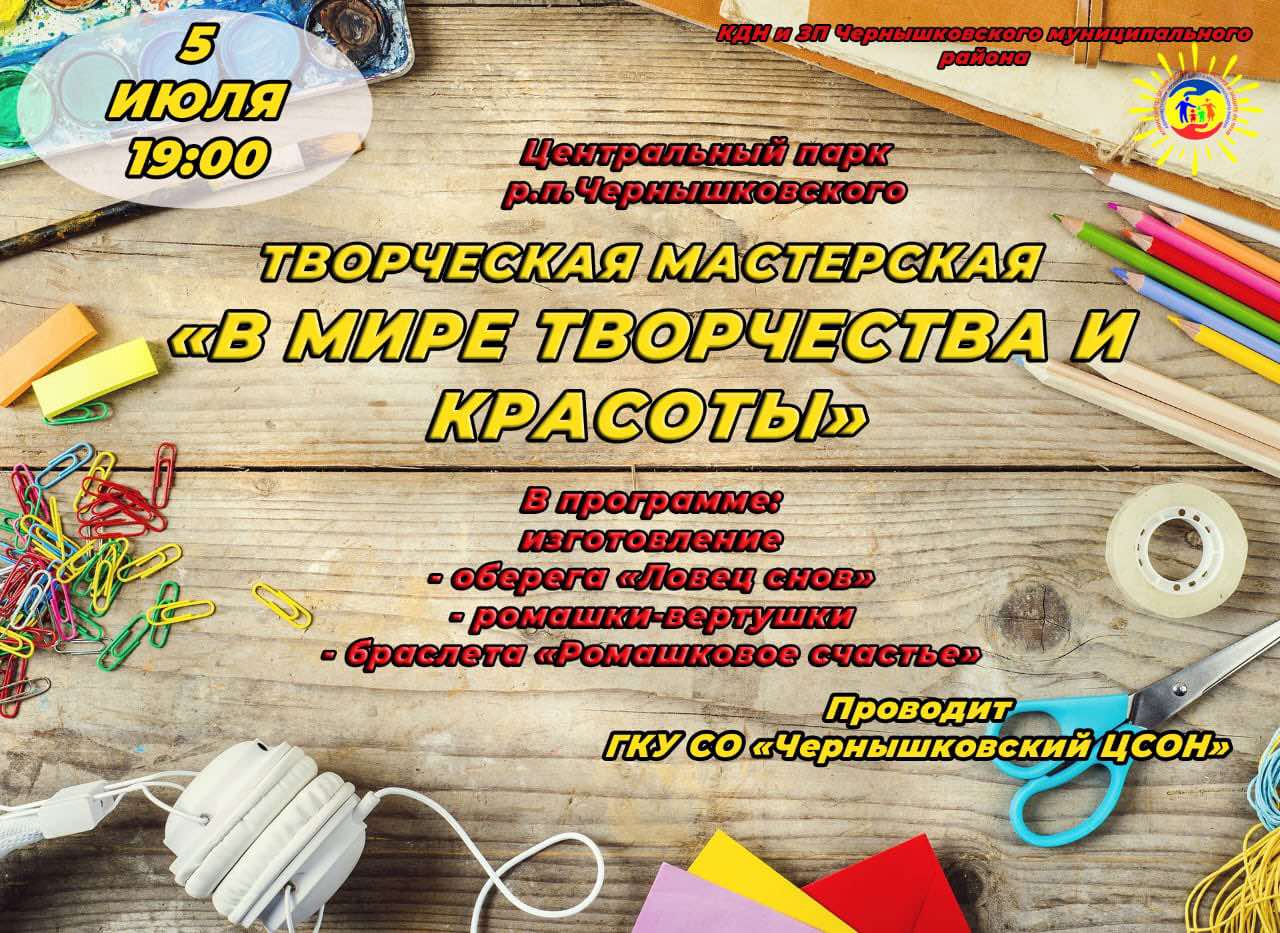 Дорогие ребята и уважаемые взрослые! Приглашаем вас 5 июля в творческую мастерскую.