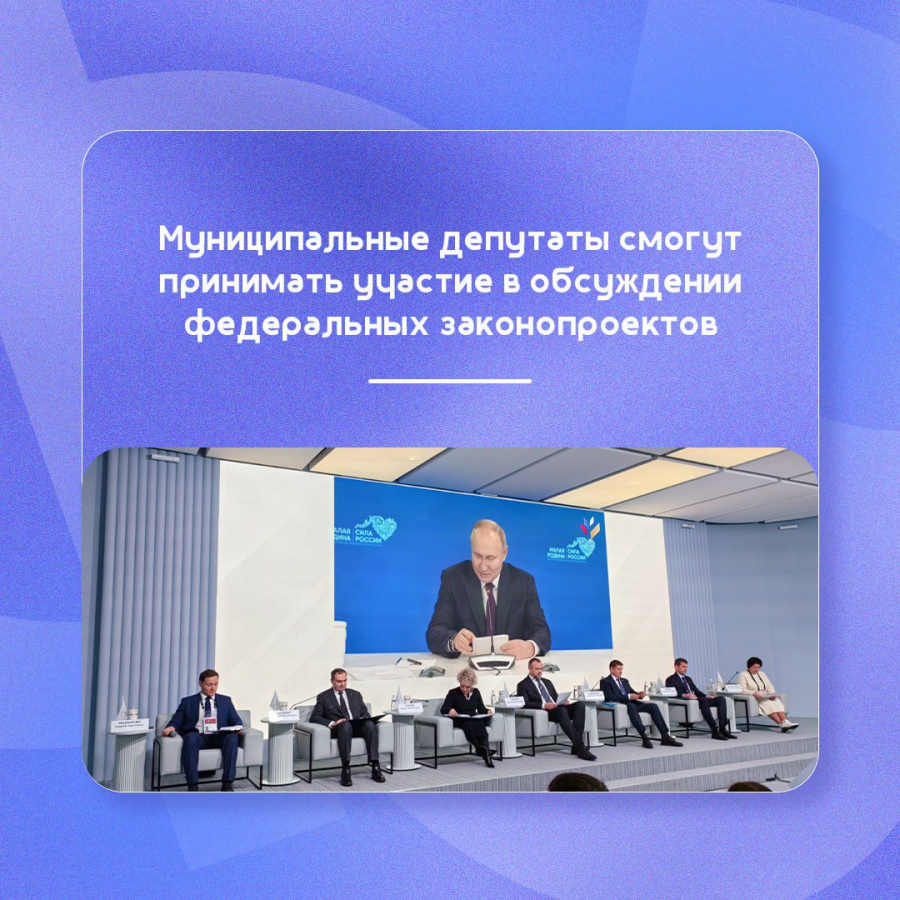 Муниципальные депутаты смогут принимать участие в обсуждениях федеральных законопроектов.