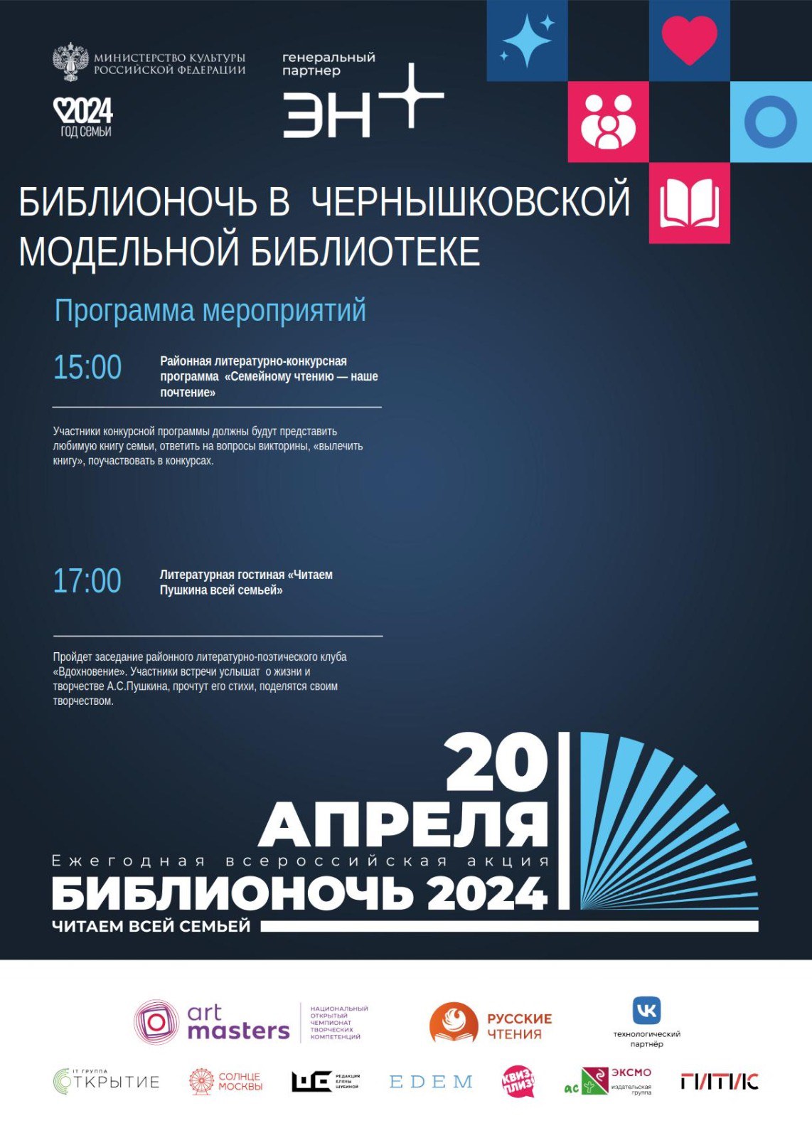В 2024 году в России в тринадцатый раз пройдет ежегодная просветительская акция «Библионочь» — событие, ставшее замечательной традицией для всего читающего сообщества нашей страны, всех любителей библиотек и книг.