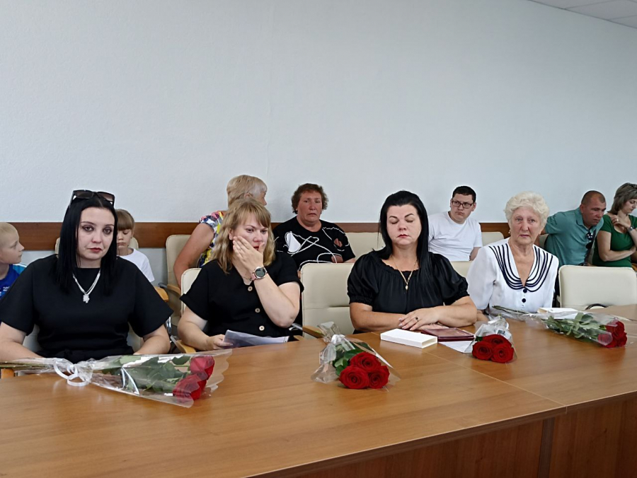 Военком города Камышина и Камышинского района Александр Люков передал награды вдовам и матери погибших героев, и.о. главы Камышинского района Денис Панченко вручил им алые розы.