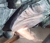 При очистке металла использовалась как лазерная установка, так и ручные инструменты. После очистки специалистам открылись микротрещины бронзовой конструкции, которые кропотливо устранялись с помощью специальной сварки – для этого посредством лабораторных анализов был установлен точный состав сплава и подобраны соответствующие режимы сварочных работ.