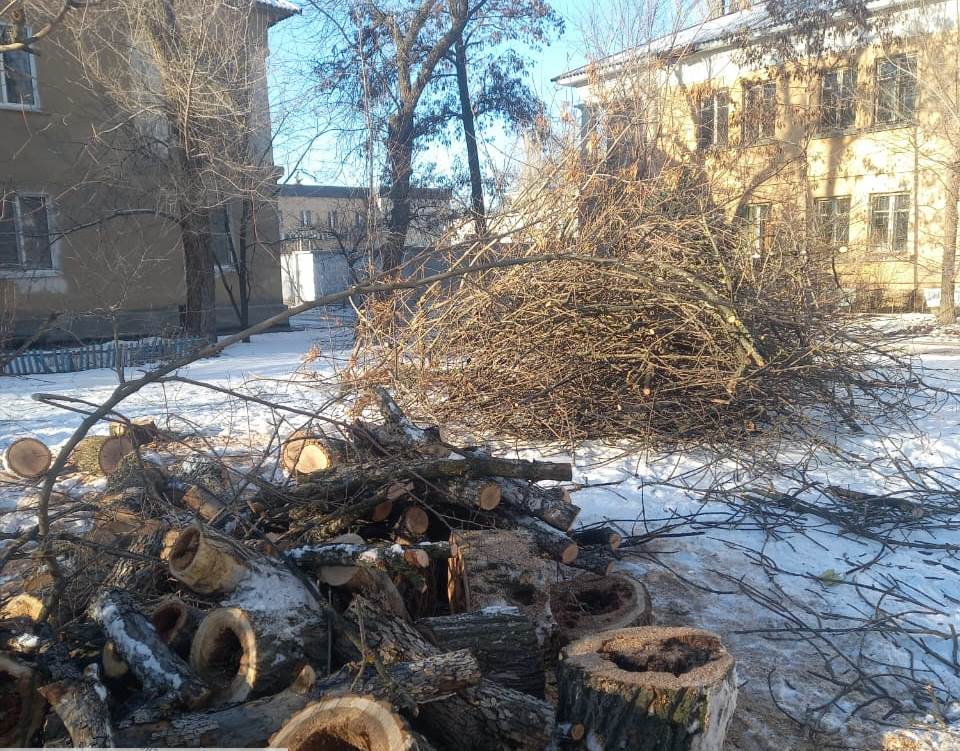Рабочие спилили и обрезали порядка 80 засохших деревьев в 8 и 20 кварталах.