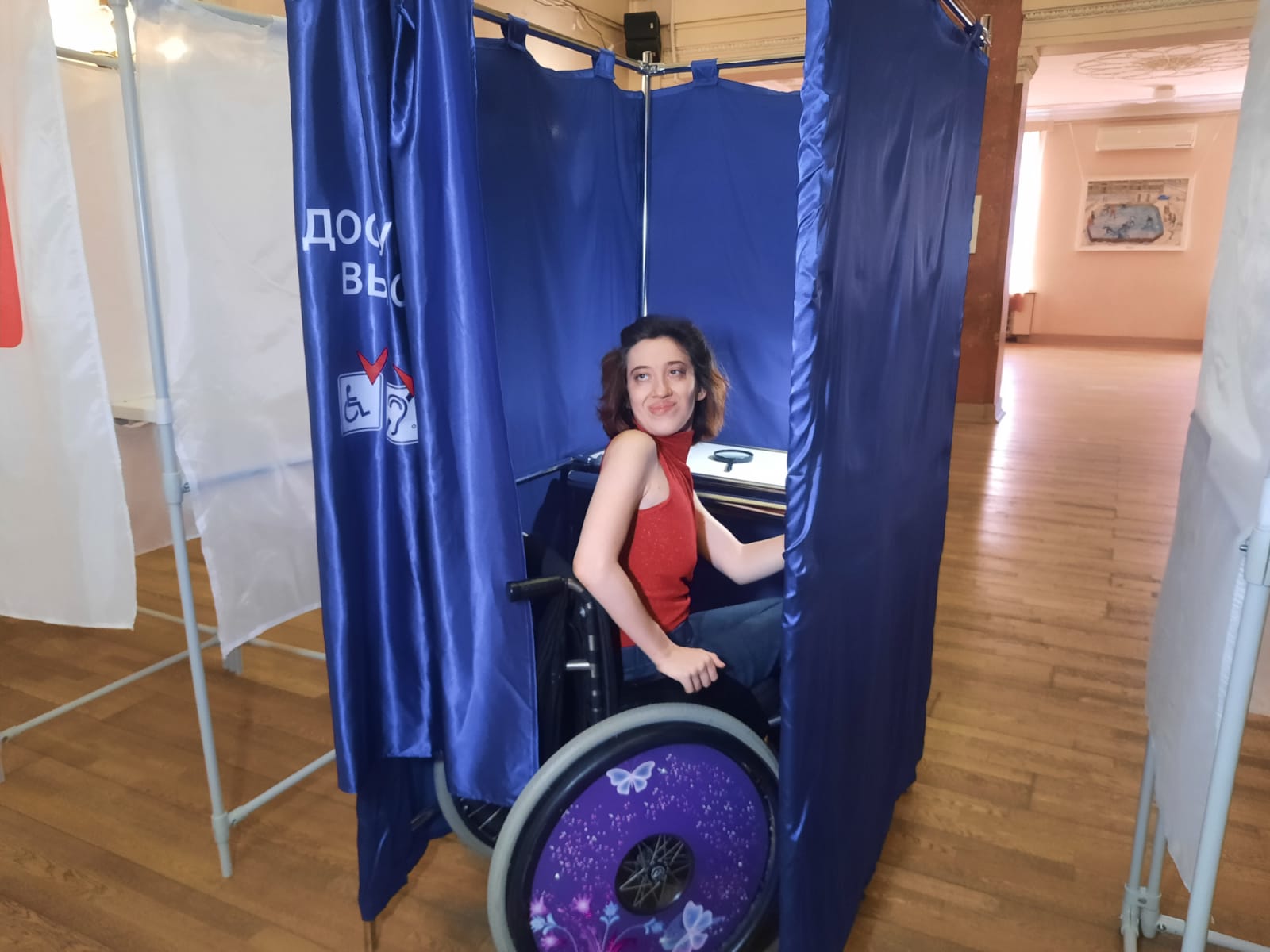 Женщина с ограниченными возможностями протестировала процедуру голосования.
