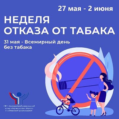 27 мая-02 июня 2024 года - Неделя отказа от табака (в честь Всемирного дня без табака 31 мая)